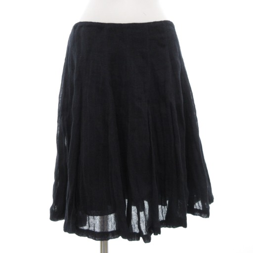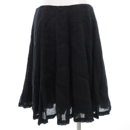 ラルフローレン RALPH LAUREN フレアスカート ギャザー ひざ丈 麻 リネン 4 紺 ネイビー /GV レディース