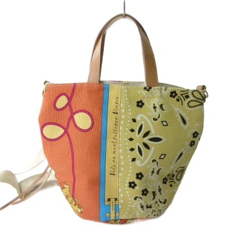 マニプリ manipuri ハンドバッグ ショルダーバッグ キャンバス 2WAY バンダナ柄 オレンジ イエロー レディース