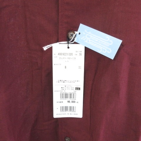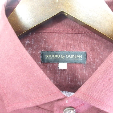 • 未使用品 ダーバン DURBAN STUDIO by D'URBAN タグ付き シャツ 長袖 リネン コットン ボルドー LL メンズ