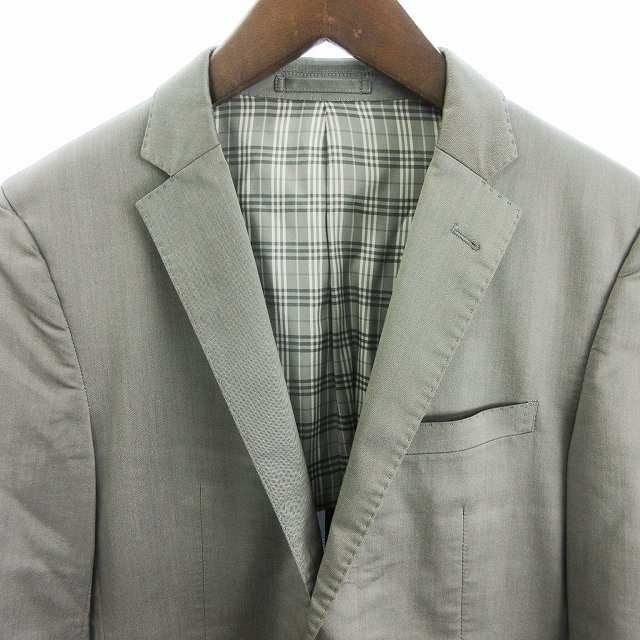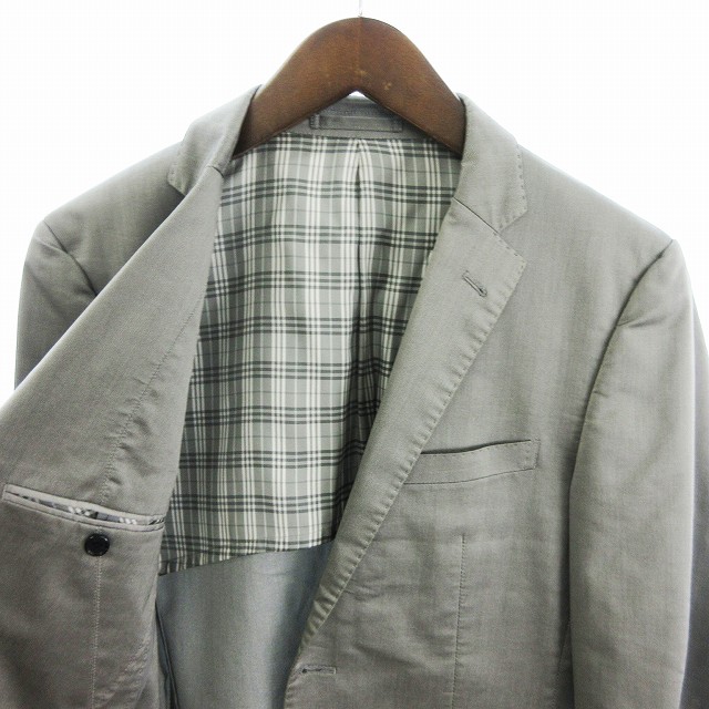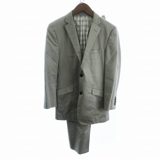 バーバリーブラックレーベル BURBERRY BLACK LABEL スーツ セットアップ テーラードジャケット シングル 2B 背抜きパンツ スラックス ジップフライ グレー S 73cm メンズ