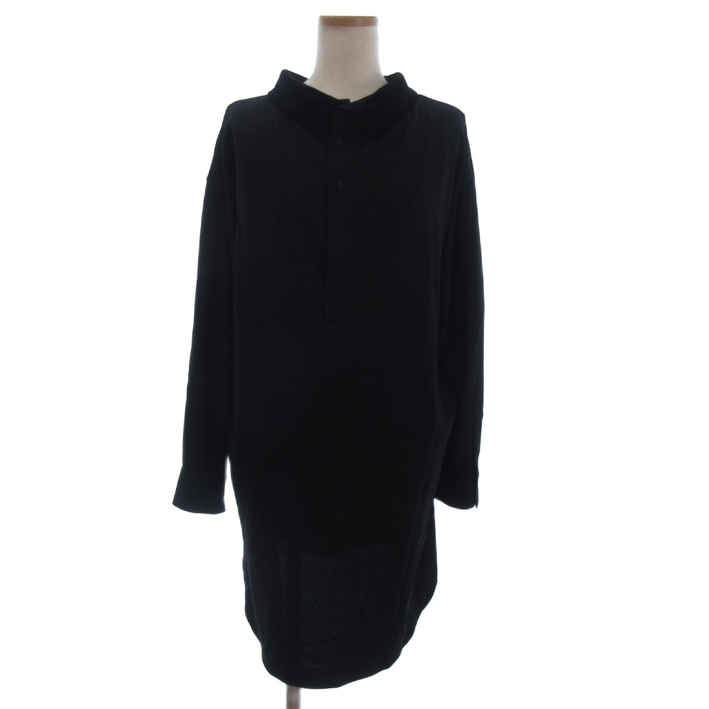 • ヒロココシノ HIROKO KOSHINO ワンピース 長袖 ひざ丈 切替 ベロア 黒 ラメ ブラック 38 レディース
