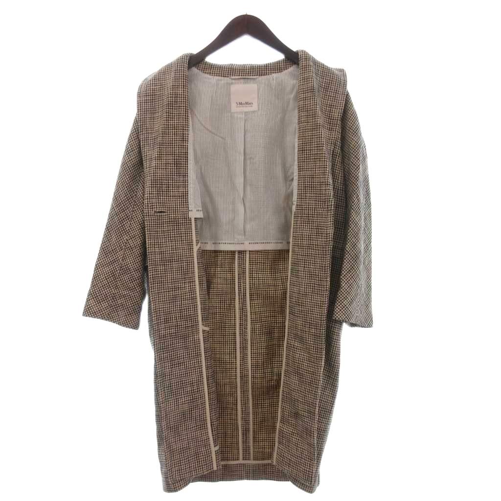 • Sマックスマーラ 'S Max Mara チェスターコート 千鳥格子 長袖 コットン 40 ベージュ 黒 ブラック レディース
