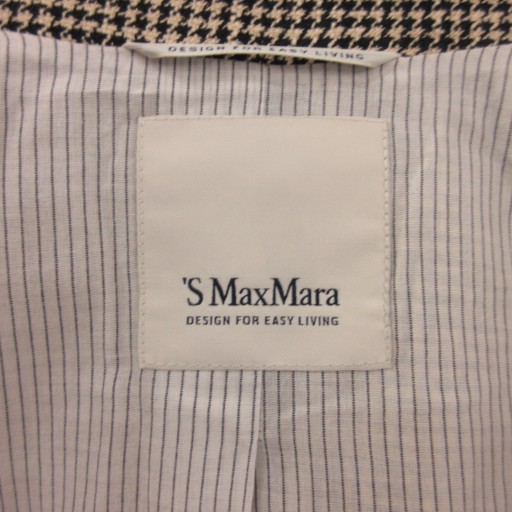 Sマックスマーラ 'S Max Mara チェスターコート 千鳥格子 長袖 コットン 40 ベージュ 黒 ブラック レディース