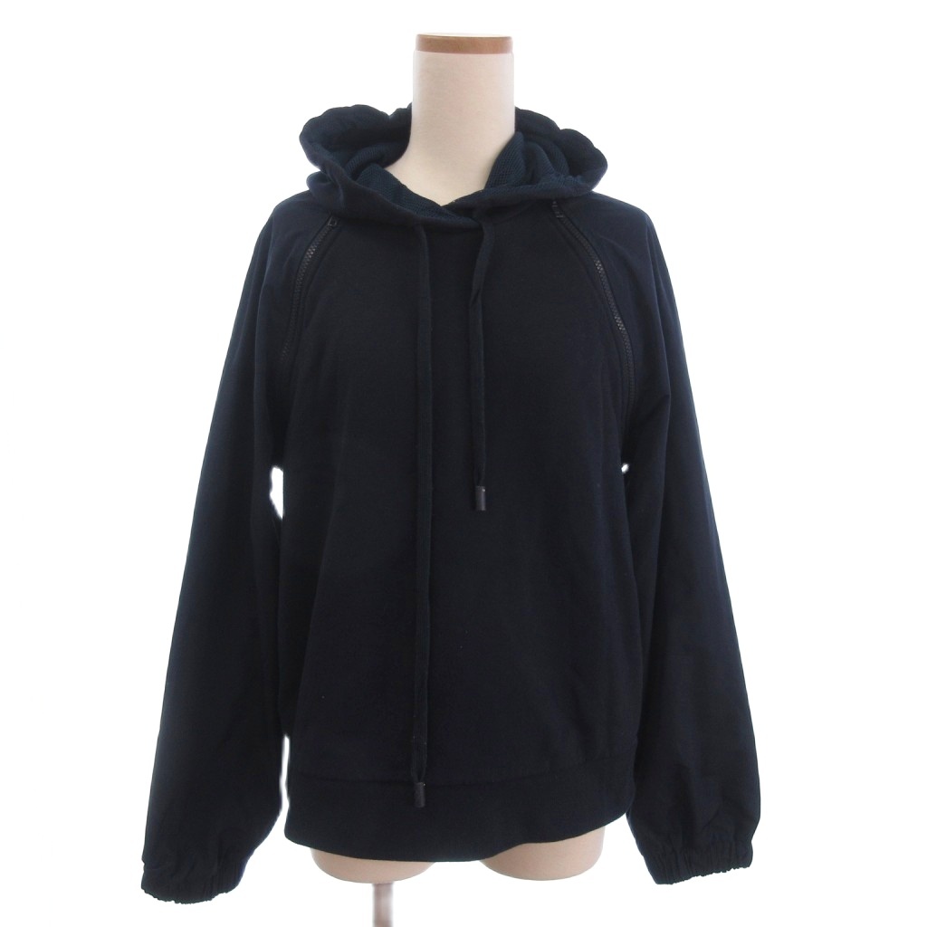 • スポーツマックス マックスマーラ SPORT MAX パーカー プルオーバー フード 裏起毛 切替 紺 ネイビー L レディース
