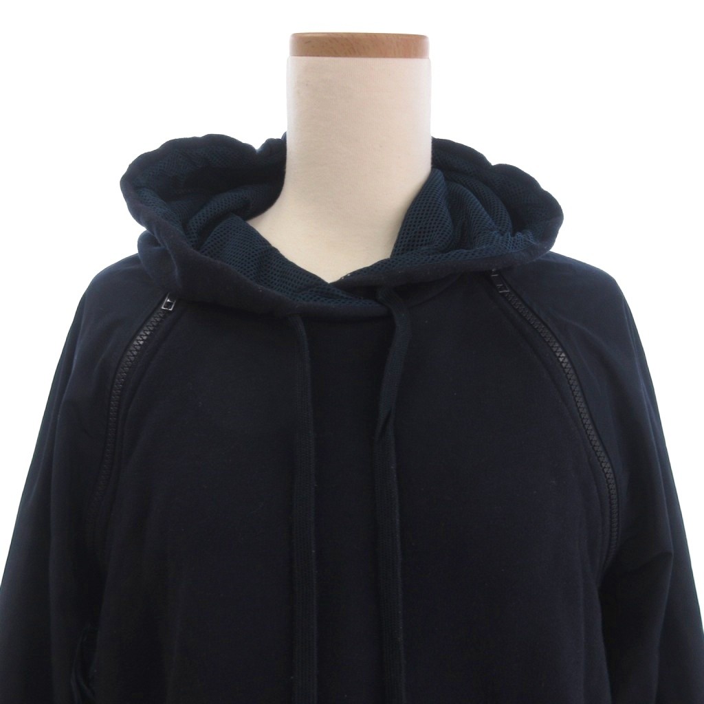 スポーツマックス マックスマーラ SPORT MAX パーカー プルオーバー フード 裏起毛 切替 紺 ネイビー L レディース