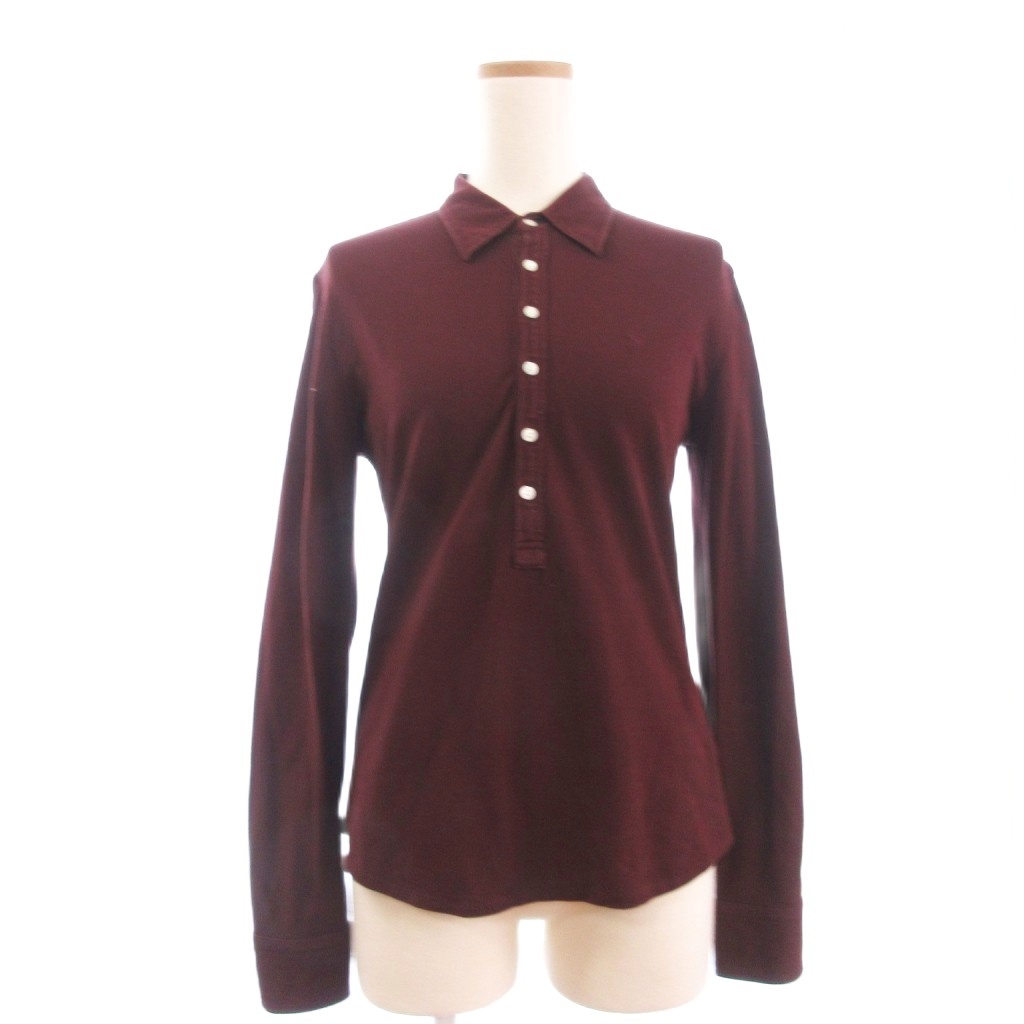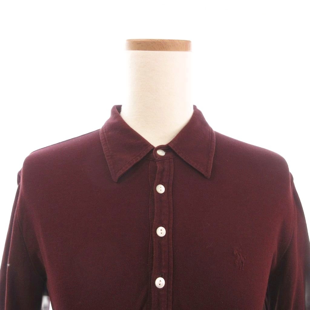 ラルフローレン RALPH LAUREN ポロシャツ カットソー 長袖 鹿の子 ロゴ 刺繍 コットン ボルドー L レディース