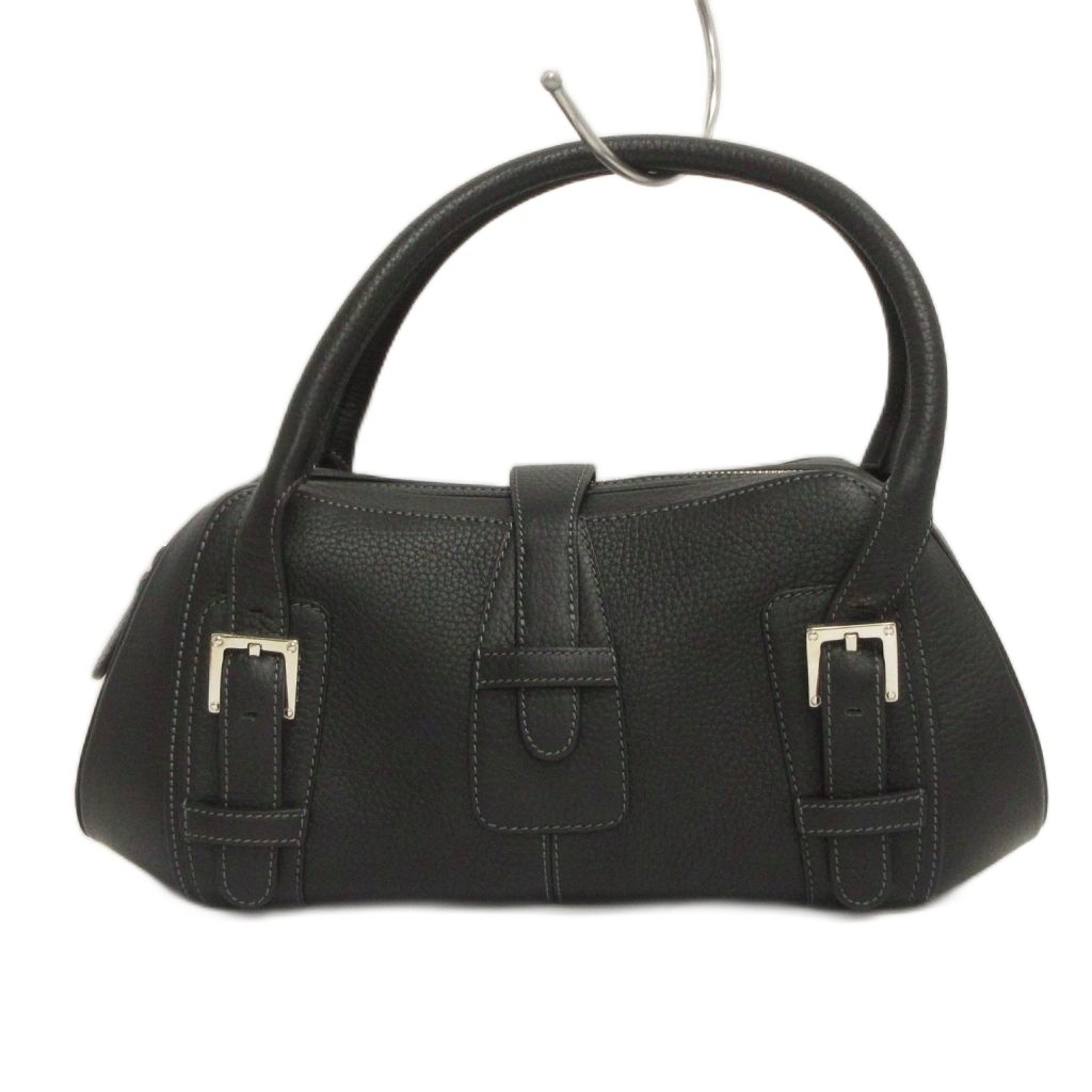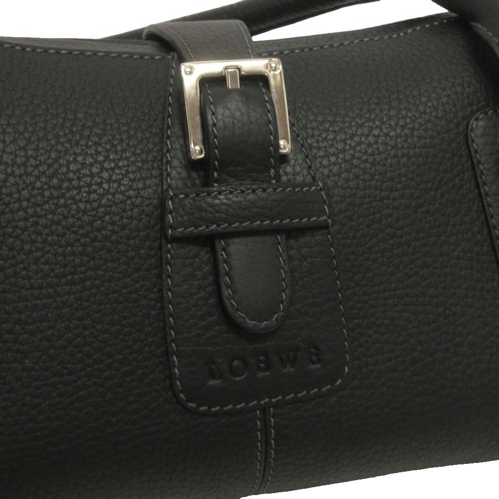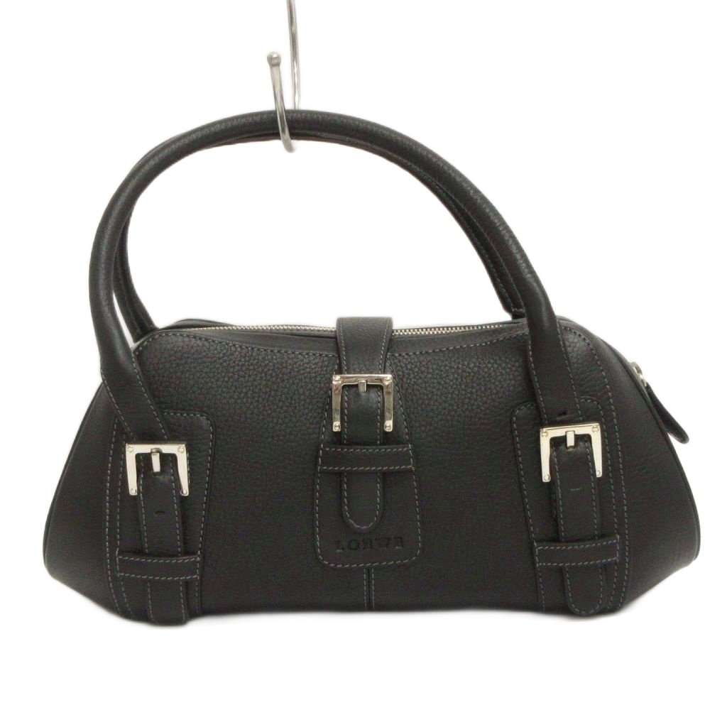 ロエベ LOEWE 美品 センダ ミニボストン ハンドバッグ ベルト レザー 黒 ブラック 鞄 レディース