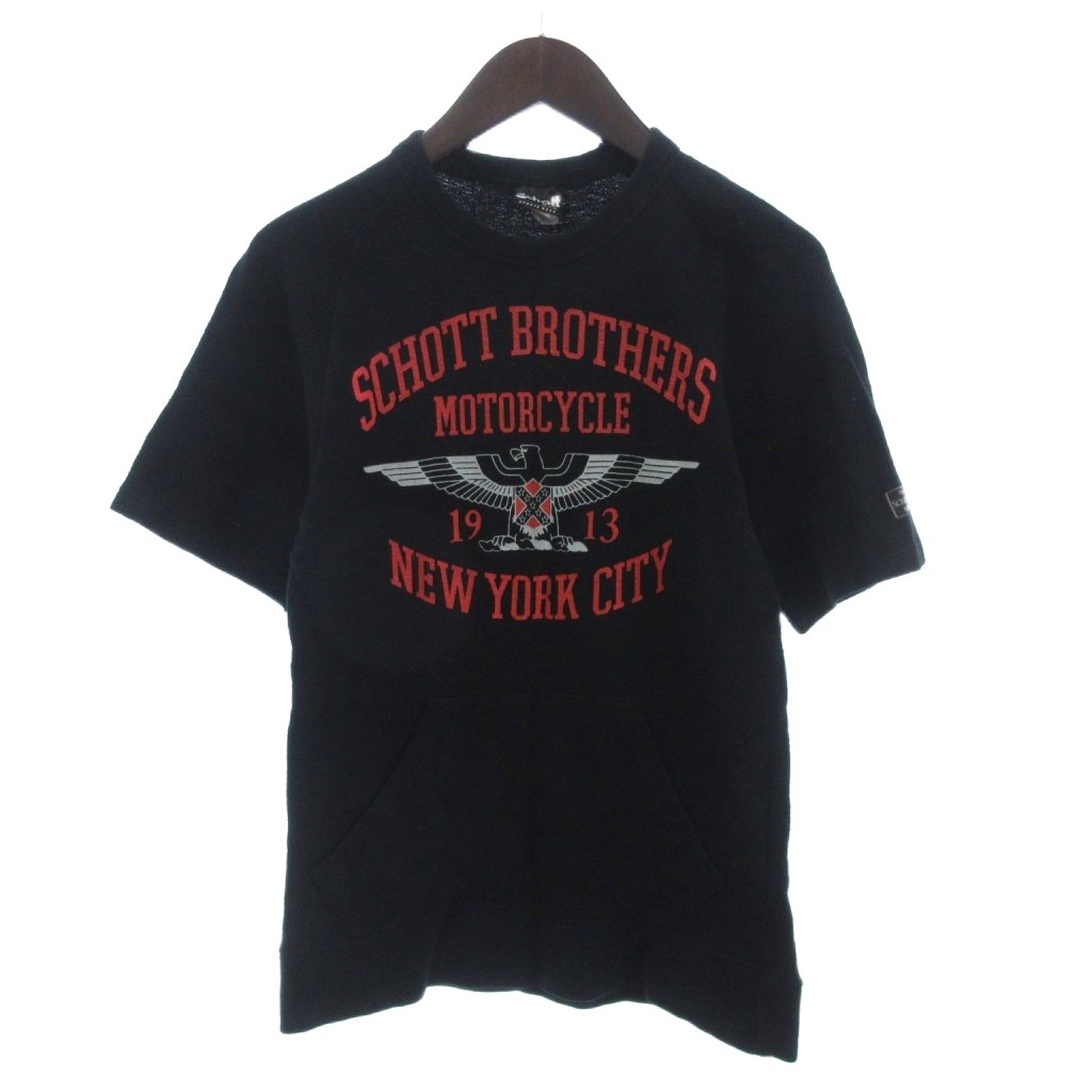ショット SCHOTT カットソー Tシャツ 半袖 プリント モーターサイクル コットン 1913 黒 ブラック S メンズ