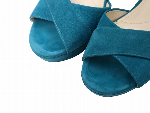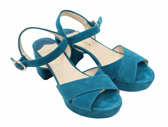 • 23.0cm PRADA プラダ Velvet ベルベット プラットフォーム ヒール サンダル パンプス Green グリーン /◆ レディース