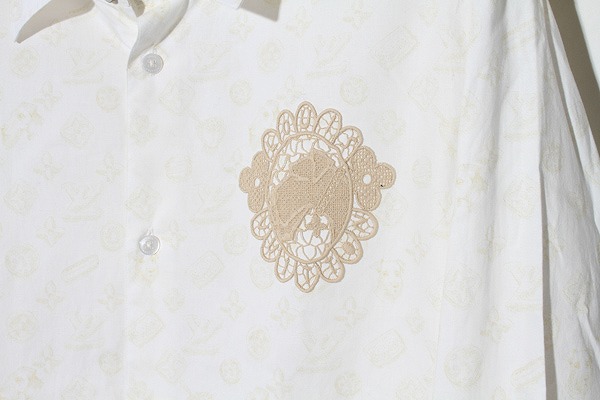 • 2024AW LOUIS VUITTON ルイヴィトン embroidery Monogram Sand L/S Shirt エンブロイダリー モノグラム 総柄 サンド L/S シャツ L WHITE ホワイト /● メンズ