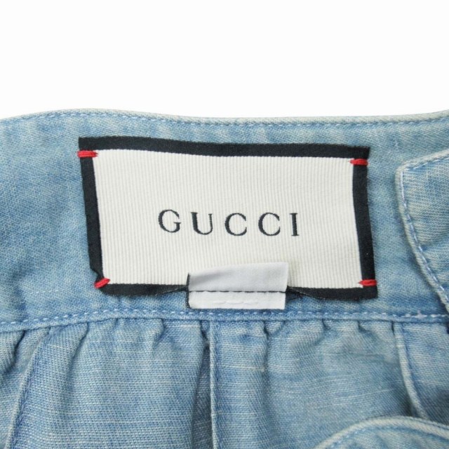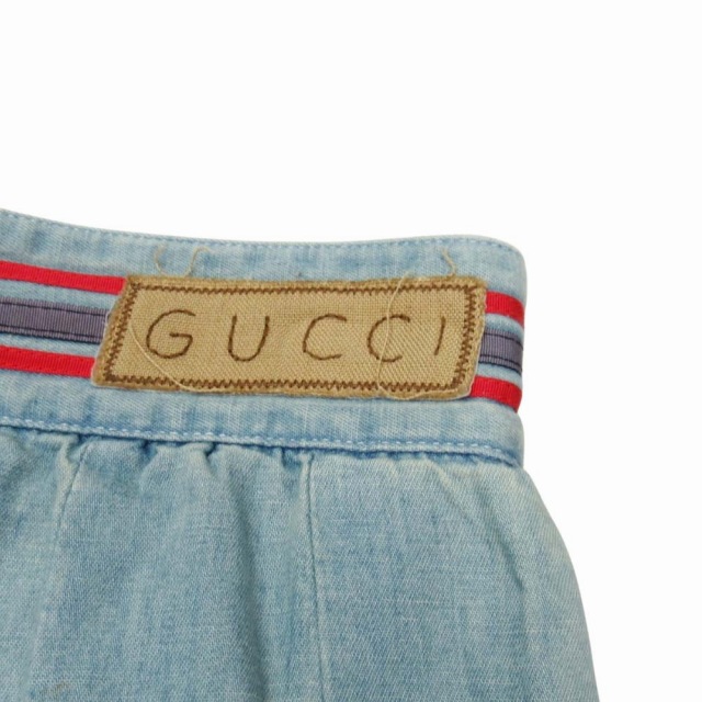 • グッチ GUCCI ソフトデニム ロング プリーツスカート ロゴ ライン マキシ丈 40 ライトインディゴ 599360/△E15/レディース