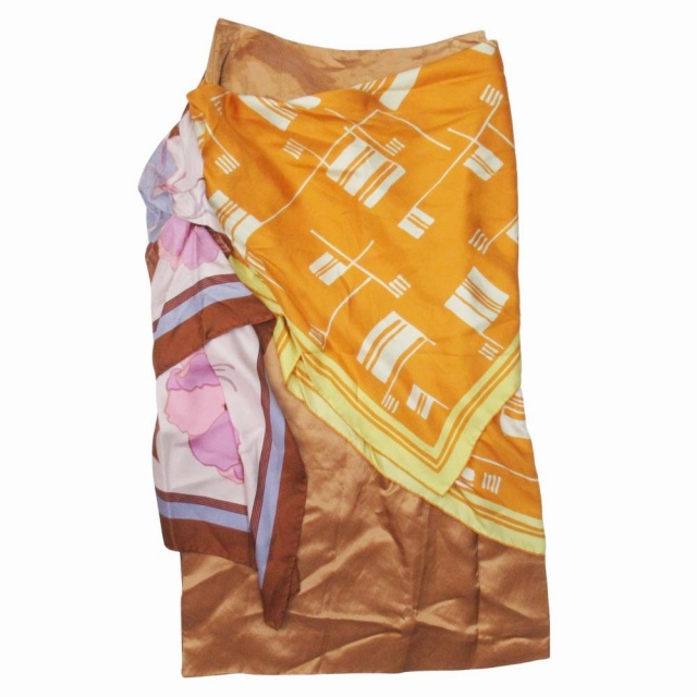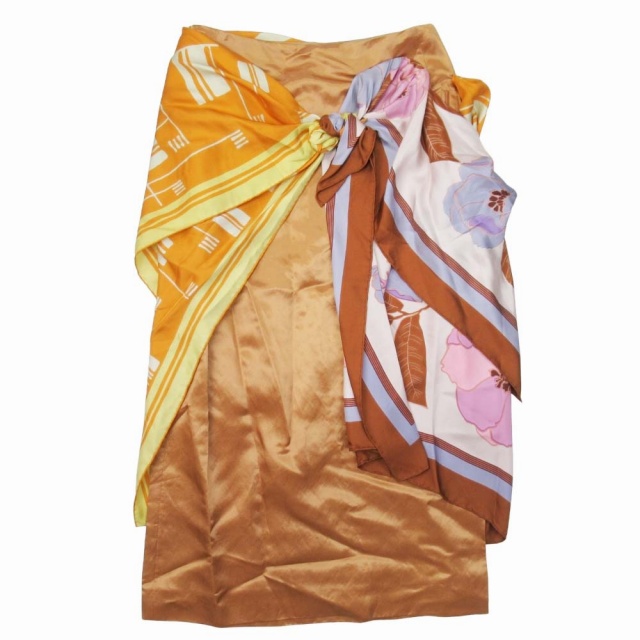 美品 18ss ドリスヴァンノッテン DRIES VAN NOTEN スカーフドッキング ミモレスカート セミタイトシルエット 花柄 膝下丈 36 ブロンズ/△J09/レディース