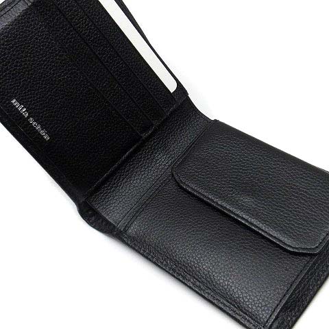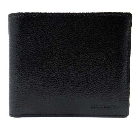 • 新品同様 ミラショーン mila schon 二つ折り 財布 レザー 牛革 ロゴ型押し 黒 ブラック