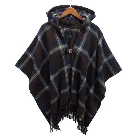 イネド INED ポンチョ カーディガン 羽織 フード フリンジ ダークブラウン F レディース
