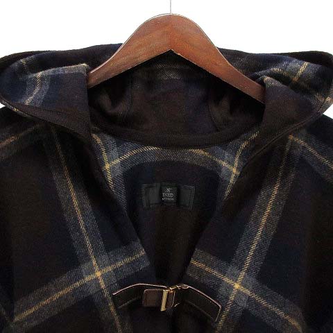 • イネド INED ポンチョ カーディガン 羽織 フード フリンジ ダークブラウン F レディース