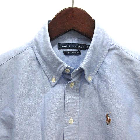 • ラルフローレン RALPH LAUREN オックスフォード ボタンダウン シャツ 長袖 ワンポイント スーパースリムフィット ライトブルー 4 レディース