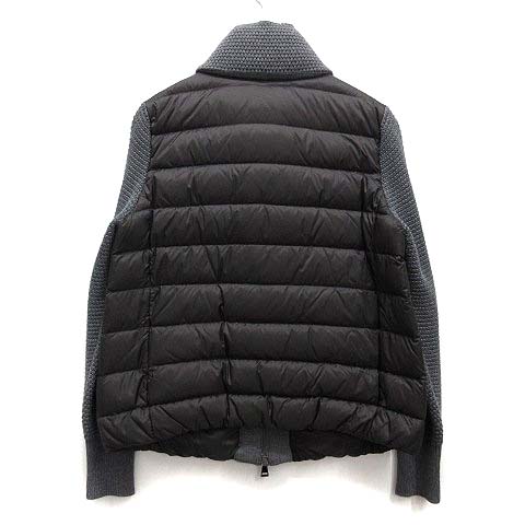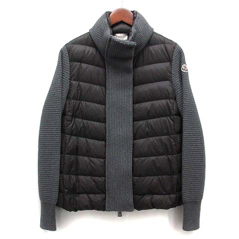 • モンクレール MONCLER ニット 切替 ダウン ジャケット カーディガン ブラック グレー XS 国内正規 C20939453400 レディース