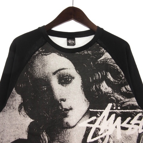 • ステューシー STUSSY ヴィーナス ラグラン Tシャツ カットソー 七分袖 プリント コットン ブラック L メンズ