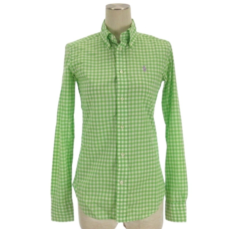 • ラルフローレン RALPH LAUREN ギンガムチェック シャツ 長袖 ボタンダウン グリーン 0 レディース