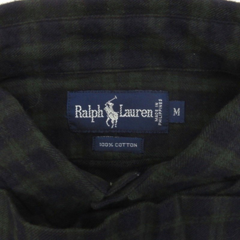 ラルフローレン RALPH LAUREN チェック シャツ 長袖 ボタンダウン ネイビー M ☆AA★ メンズ