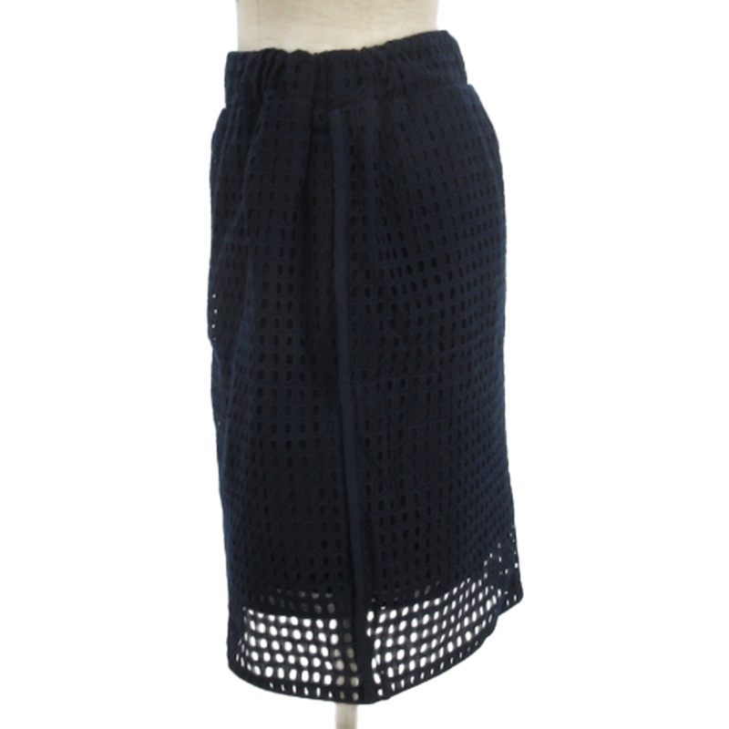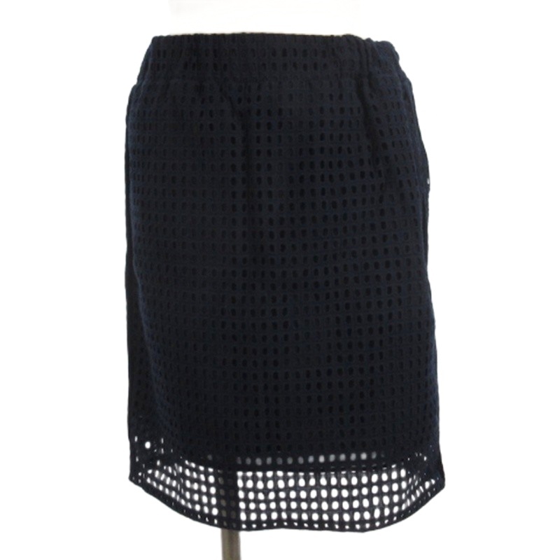 • イエナ IENA メッシュ スカート ひざ丈 イージー ネイビー 38 レディース