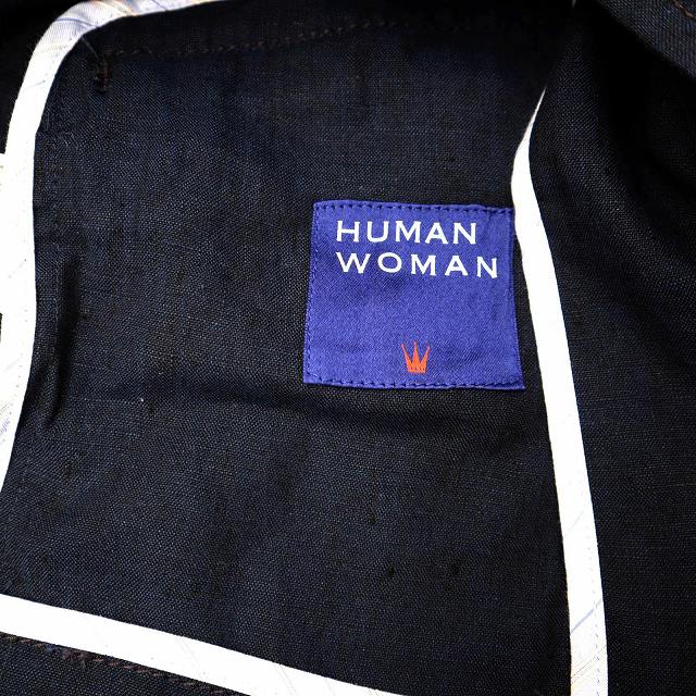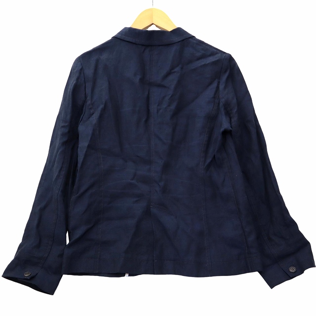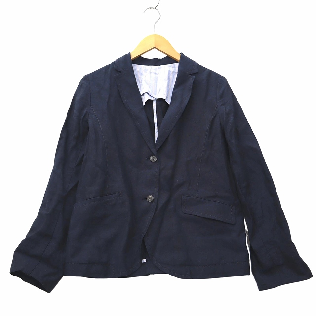 ヒューマンウーマン HUMAN WOMAN リネン シングル テーラード ジャケット M ネイビー レディース