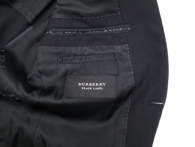 • バーバリーブラックレーベル BURBERRY BLACK LABEL 開き見せ 背抜き シングル 2B 2ピース テーラードジャケット ベスト 36R BLACK ブラック D1H06-504-09 メンズ