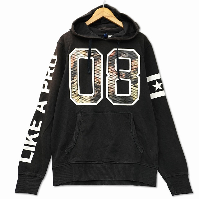 • エイチ&エム H&M ビッグナンバープリント スウェット パーカー M ブラック メンズ