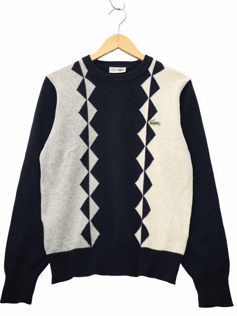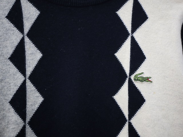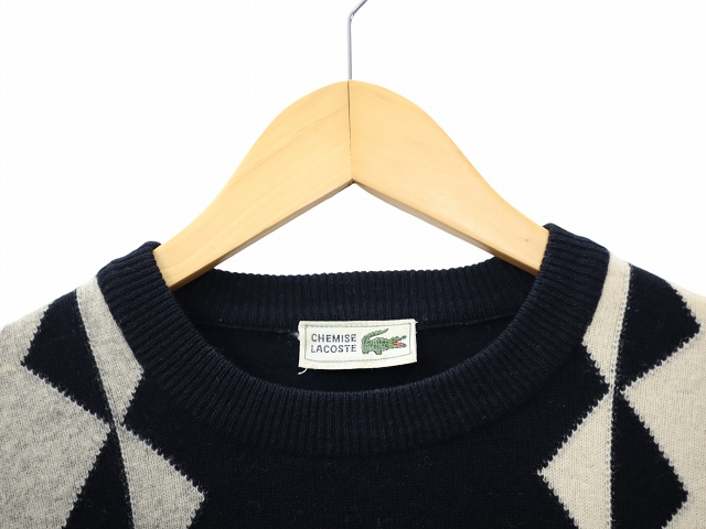ラコステ LACOSTE CHEMISE シュミーズ 90s ヴィンテージ クルーネック 長袖 ハイゲージ ニット セーター BLACK × BEIGE ブラック × ベージュ メンズ
