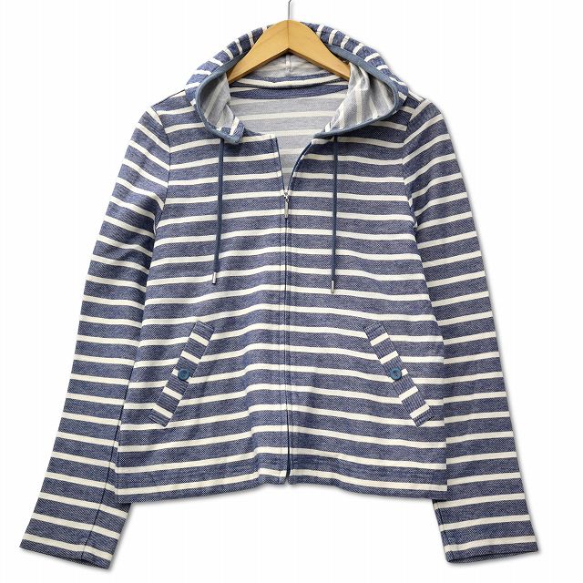 • キャラオクルス CARA O CRUZ レリアン コットン ボーダー フルジップ パーカー 9 ネイビー レディース
