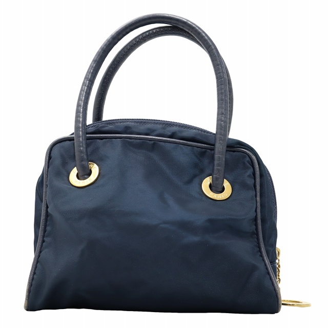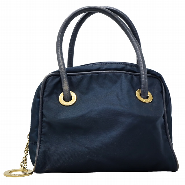 • セリーヌ CELINE ナイロン レザー ミニ ハンドバッグ NAVY ネイビー メンズ