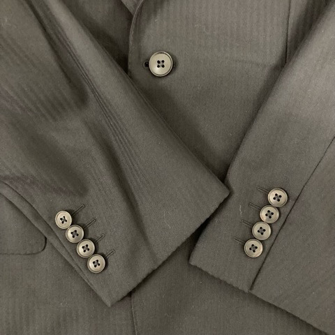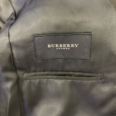 バーバリー ロンドン BURBERRY LONDON スーツ セットアップ シングル ビジネス フォーマル ストライプ ジャケット パンツ 羊毛 日本製 L 黒 ブラック メンズ