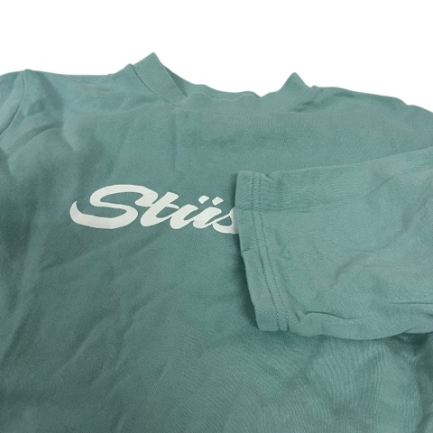 • ステューシー STUSSY Tシャツ 半袖 クルーネック ロゴプリント コットン M ミントグリーン 白 ホワイト レディース