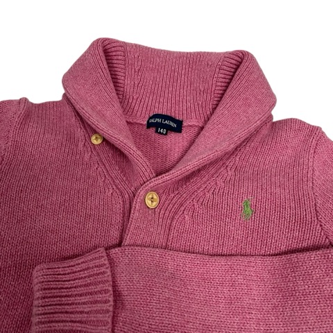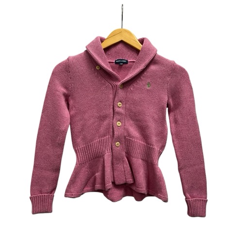 • ラルフローレン RALPH LAUREN カーディガン 長袖 無地 ロゴ刺繍 コットン 140 ピンク 緑 グリーン キッズ