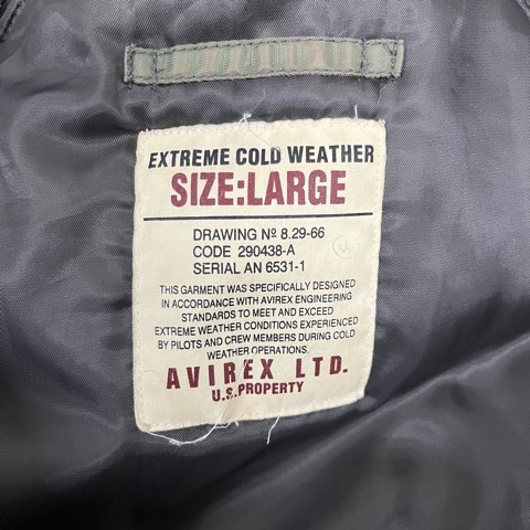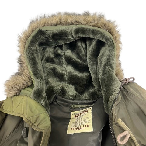 • アヴィレックス AVIREX フライトジャケット ロング 長袖 フード ロゴ ナイロン N-3B 290438-A L カーキ  メンズ