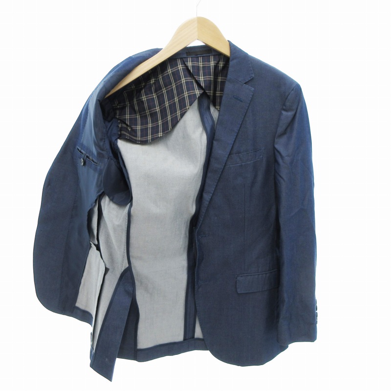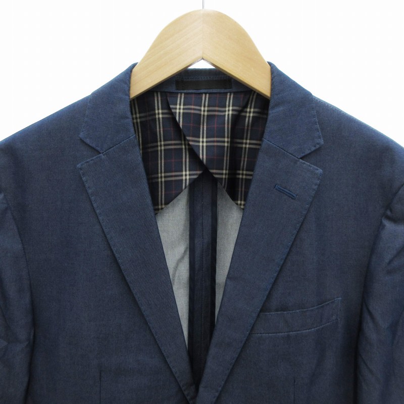 バーバリーブラックレーベル BURBERRY BLACK LABEL テーラードジャケット 背抜き 2B 裏地 チェック S 紺 ネイビー /HO メンズ