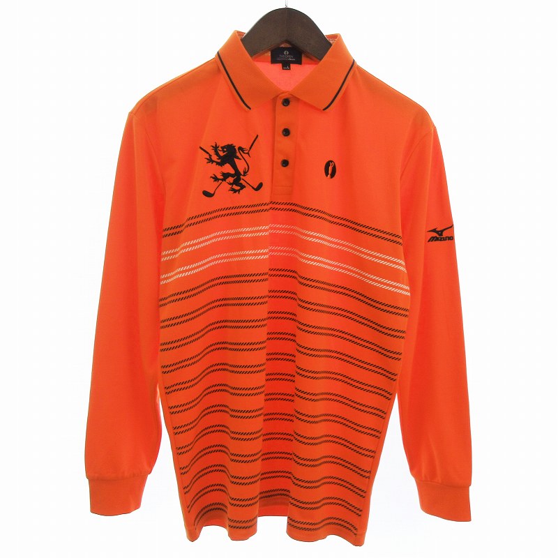 ミズノ MIZUNO THE OPEN ポロシャツ 長袖 ゴルフウェア 刺繍 プリント オレンジ L メンズ