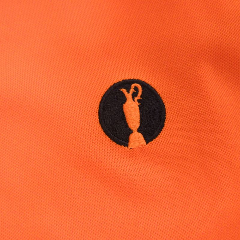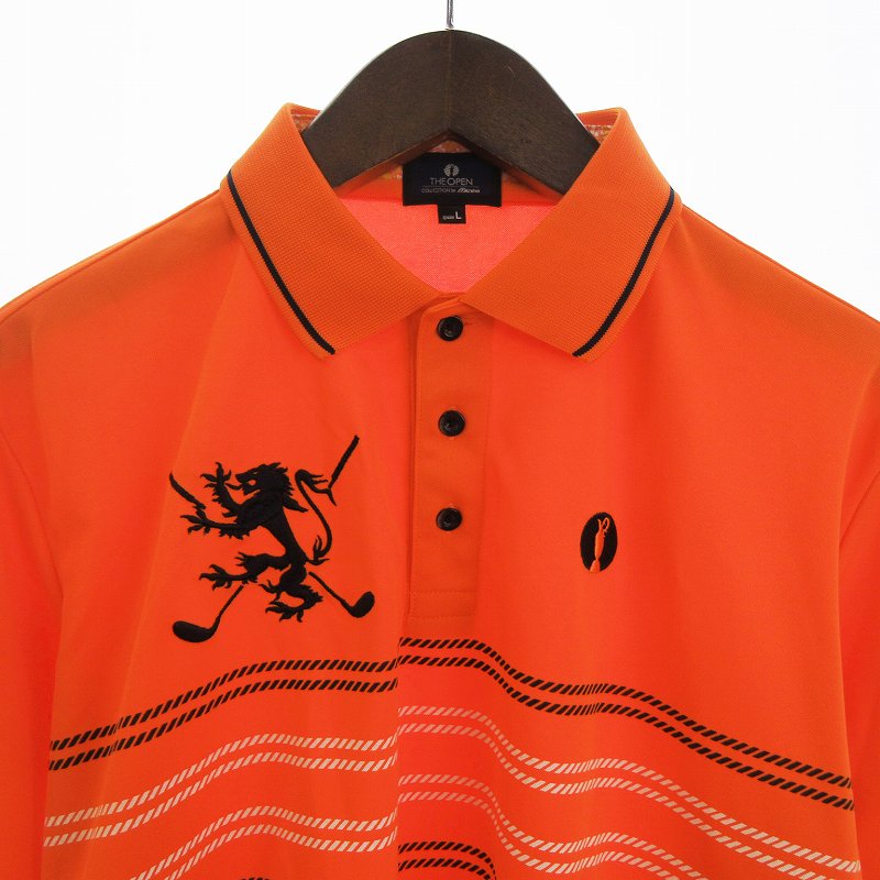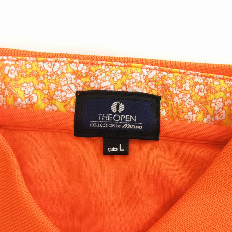 • ミズノ MIZUNO THE OPEN ポロシャツ 長袖 ゴルフウェア 刺繍 プリント オレンジ L メンズ
