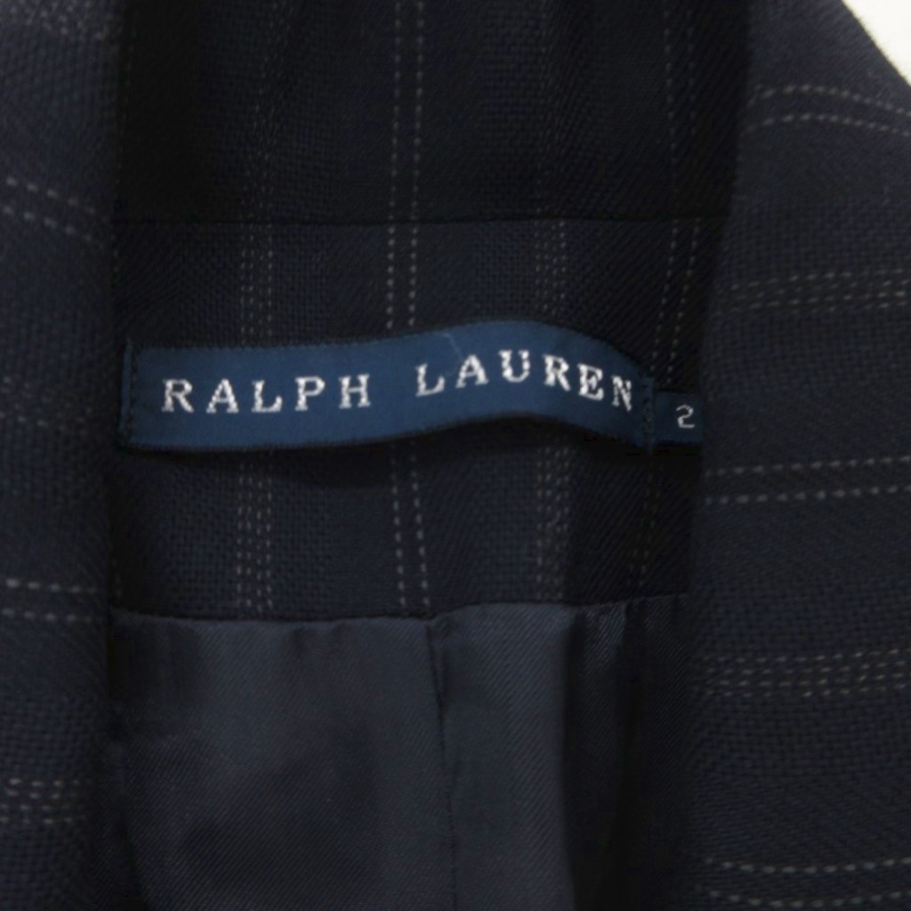 • ラルフローレン RALPH LAUREN 3Bジャケット ウール 2 ネイビー チョークストライプ  /IU レディース