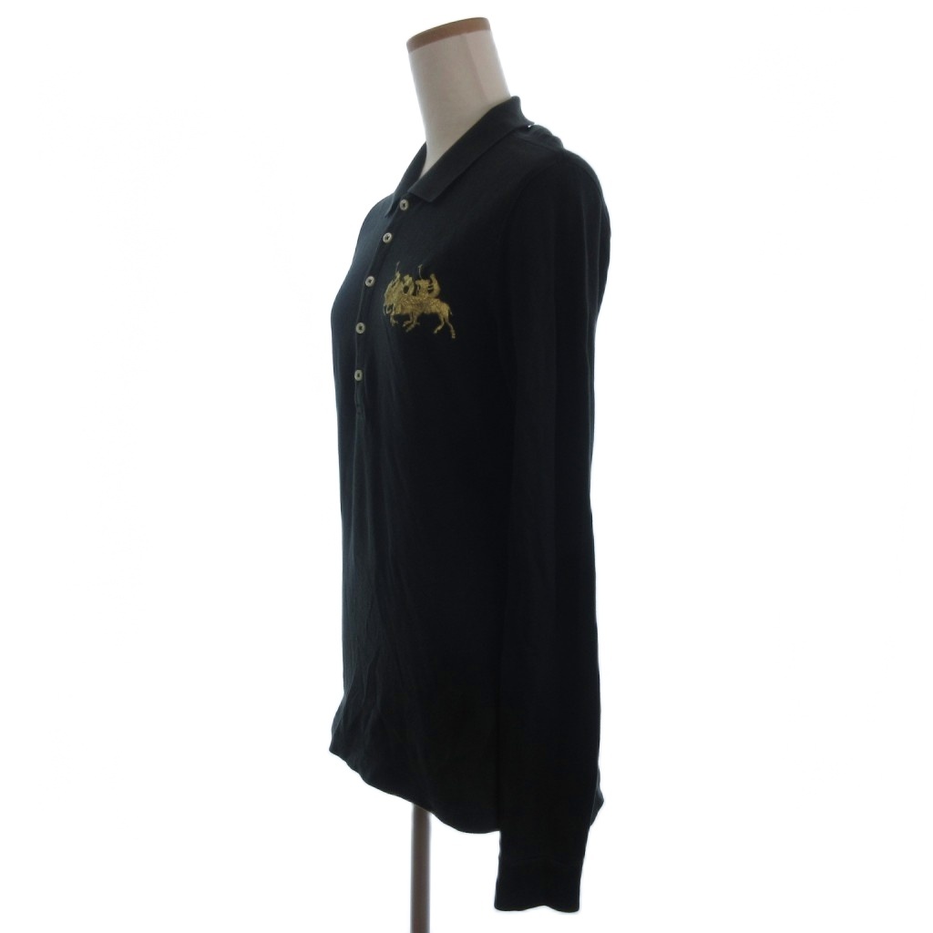 ラルフローレン RALPH LAUREN ポロシャツ 長袖 ポニー 黒 ブラック L レディース
