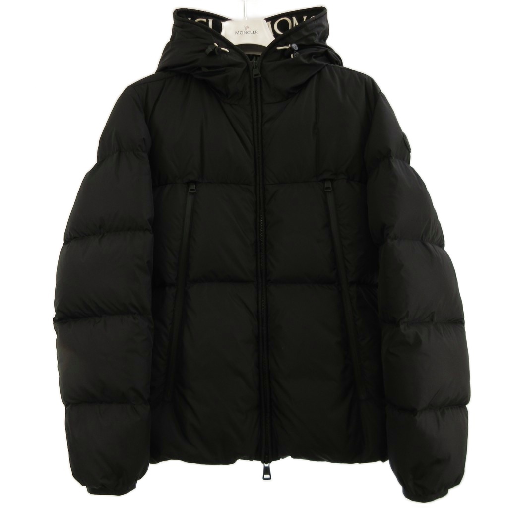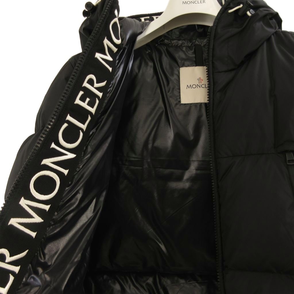 モンクレール MONCLER 美品 MONTCLA GIUBBOTT ダウンジャケット フード ジップアップ ロゴテープ F20911B56900 C0300 黒 ブラック 1 M相当 ■SK メンズ