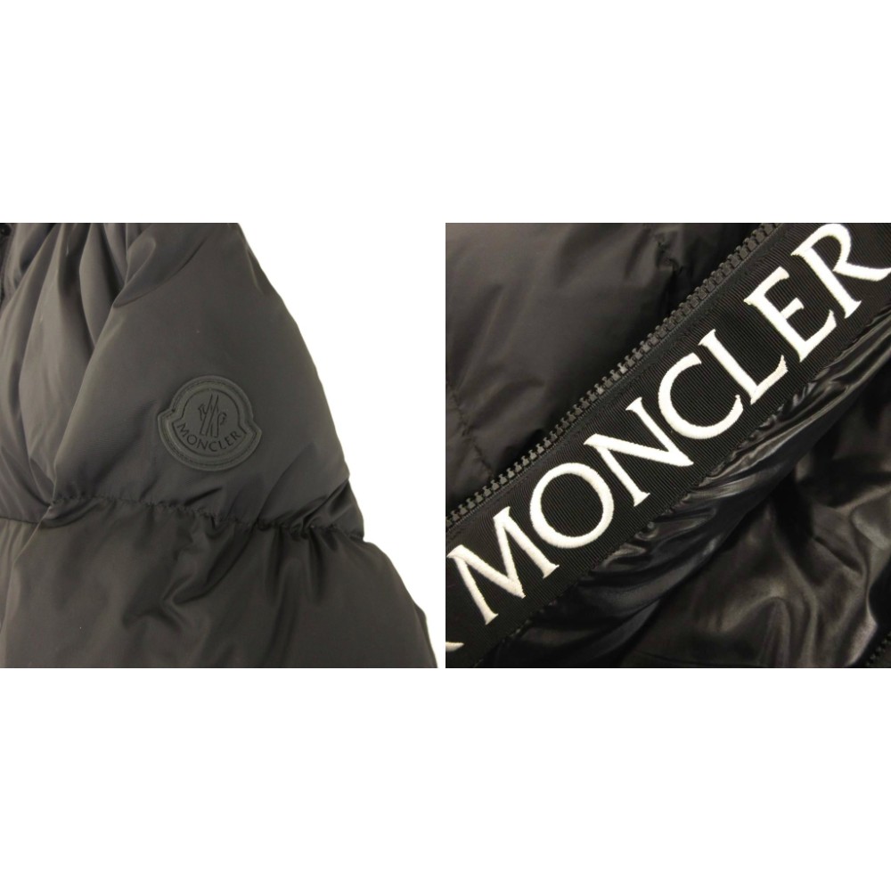 • モンクレール MONCLER 美品 MONTCLA GIUBBOTT ダウンジャケット フード ジップアップ ロゴテープ F20911B56900 C0300 黒 ブラック 1 M相当 ■SK メンズ