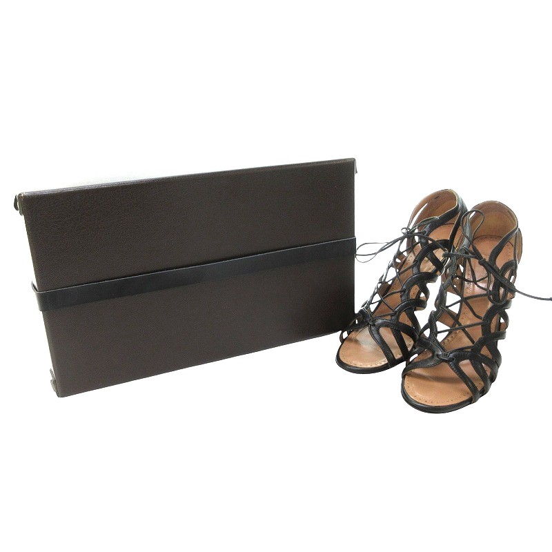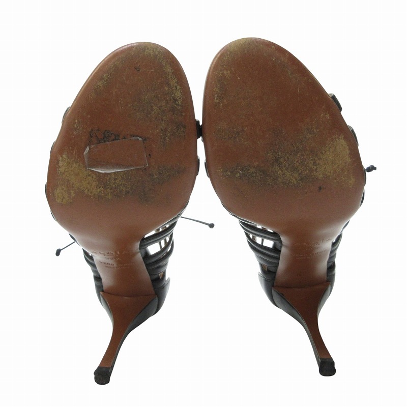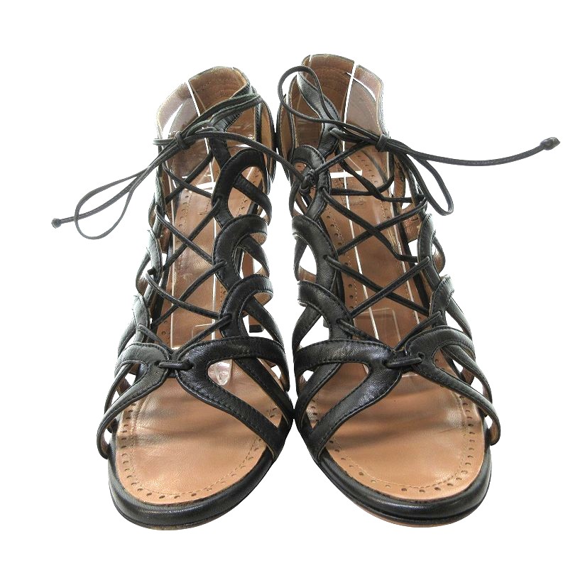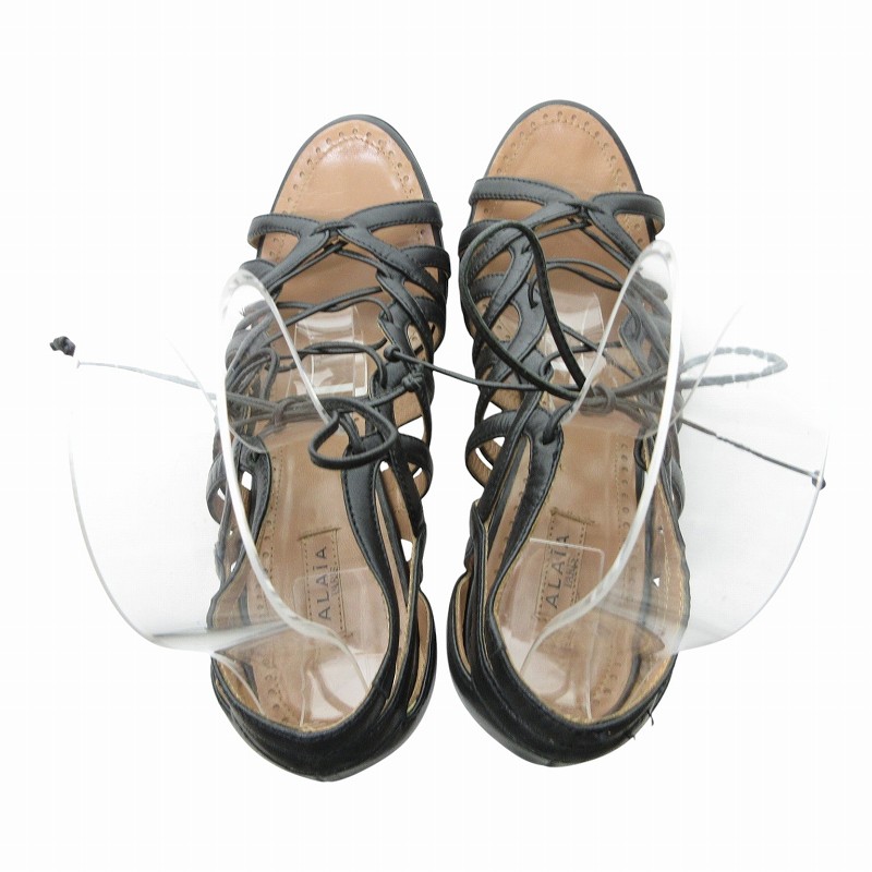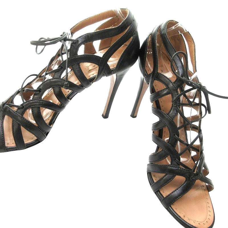 アライア ALAIA 美品 レザー レースアップ サンダル パンプス ハイヒール 黒 ブラック 39.5 約24.5㎝ IBO69 0415 レディース
