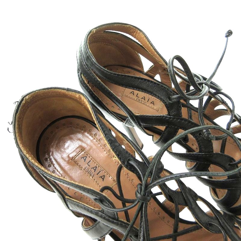 • アライア ALAIA 美品 レザー レースアップ サンダル パンプス ハイヒール 黒 ブラック 39.5 約24.5㎝ IBO69 0415 レディース