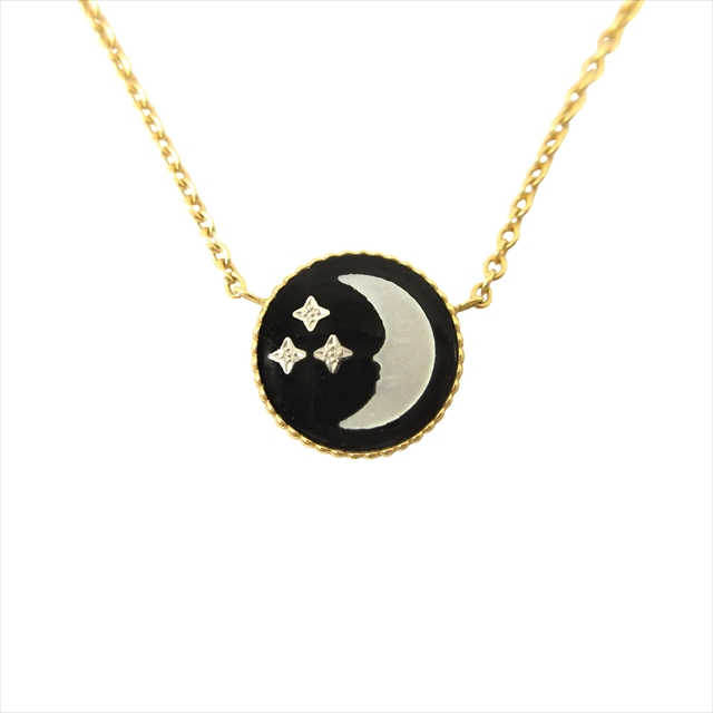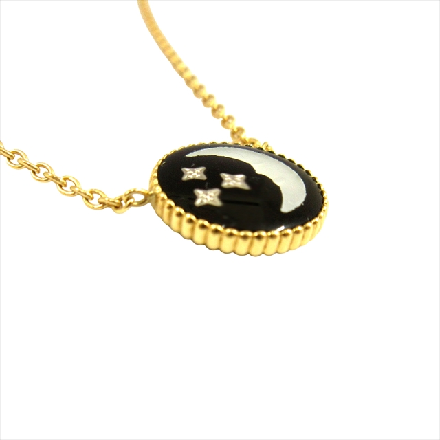 • 極美品 ディオール Dior ローズセレスト Rose Celeste ネックレス K18YG K18WG ダイヤモンド パール オニキス ペンダント 月 太陽 アクセサリー ジュエリー Au750 18金 約40cm ゴールド 黒 ブラック 白 ホワイト レディース