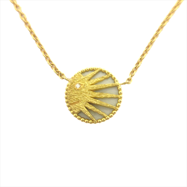 仕様 天空をモチーフにしたラッキーチャーム。片面に太陽が輝く空、もう片面に月のきらめく夜空を描いたダブルフェイスデザイン。