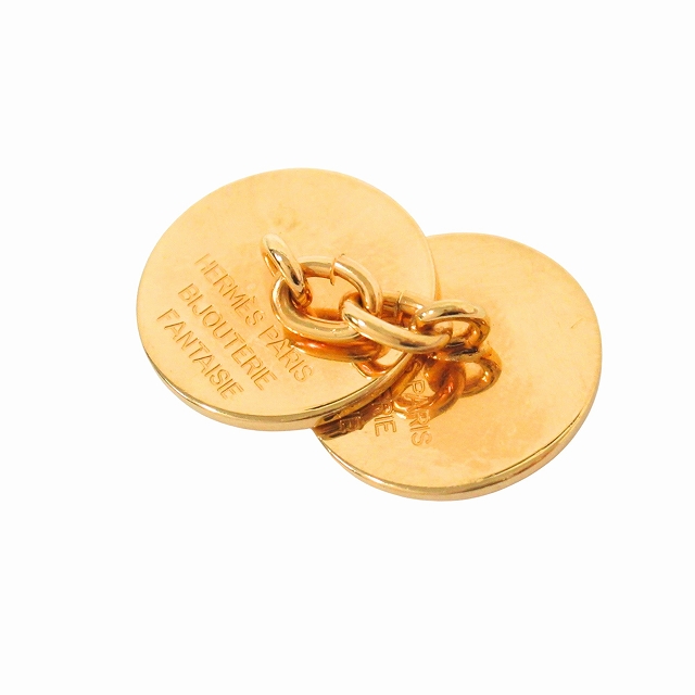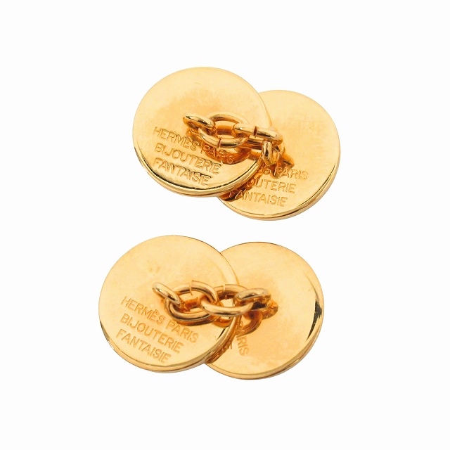 美品 エルメス HERMES セリエ ラウンド チェーン カフス ボタン カフリンクス スーツアクセサリー ジュエリー イエローゴールド メンズ ◆9