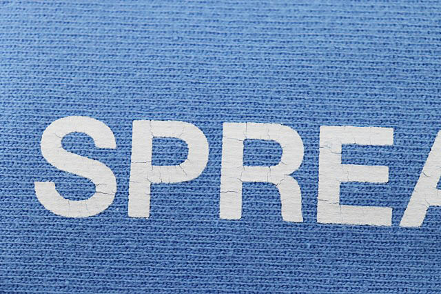状態 写真のように、首周り・袖口に色褪せ・黄ばみ・シミがあり、プリントにはヒビ割れがございます。若干の使用感がございますが、まだまだお使い頂けるお品物かと思われます。