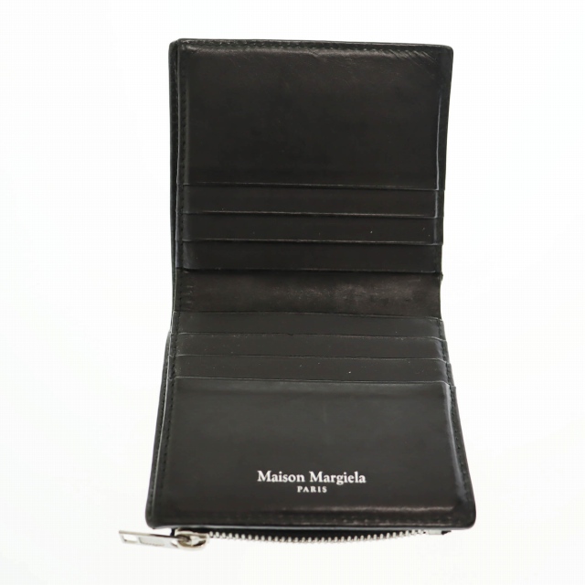 メゾンマルジェラ Maison Margiela スモール フリップフラップ レザー ウォレット 二つ折り財布 黒 ブラック ブランド古着ベクトル 中古●▲251007 メンズ レディース