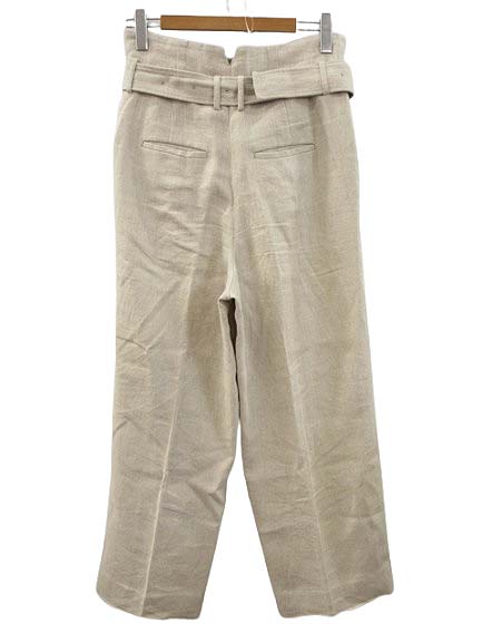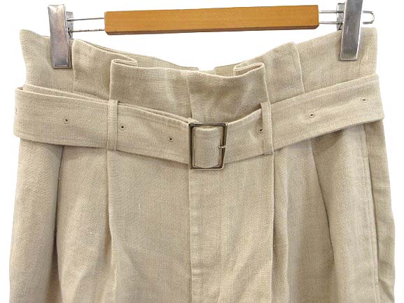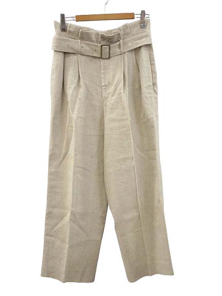 • チノ CINOH ベルテッド ワイド リネンパンツ 38 アイボリー系 麻100% ベルト付き ボトムス レディース